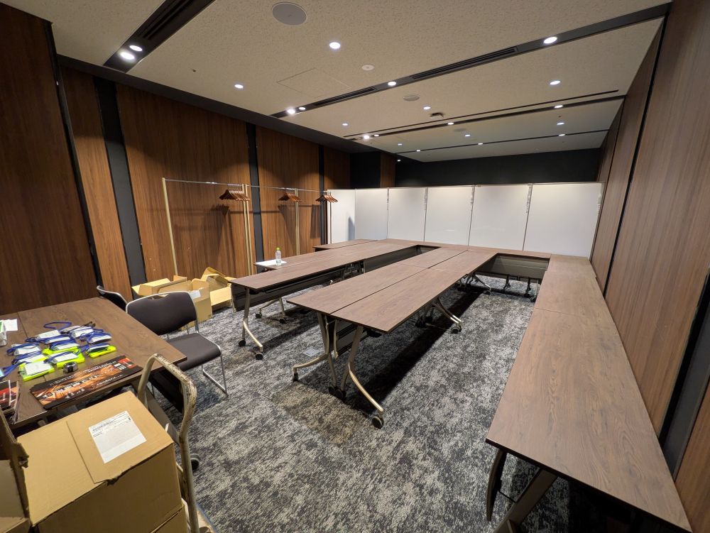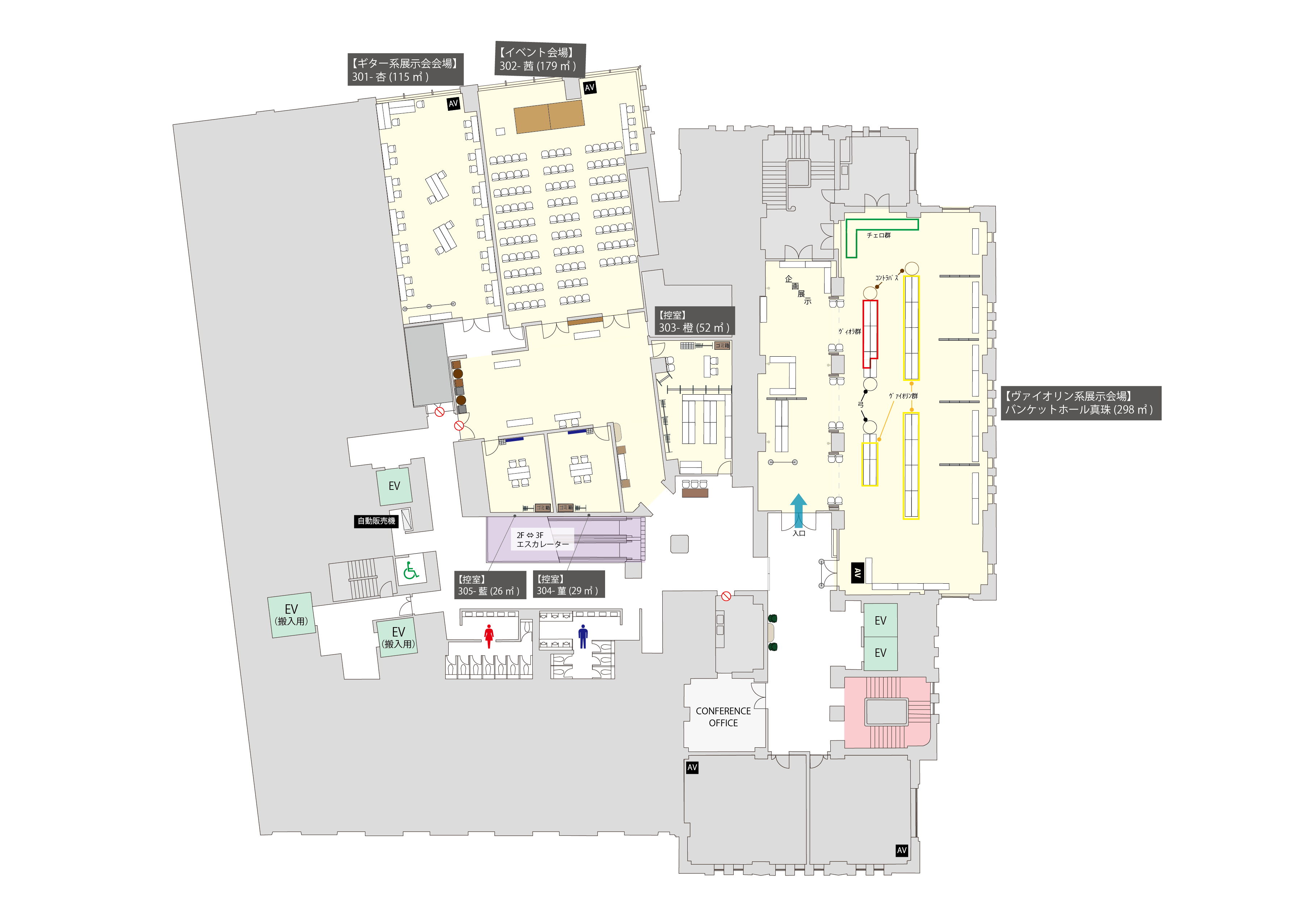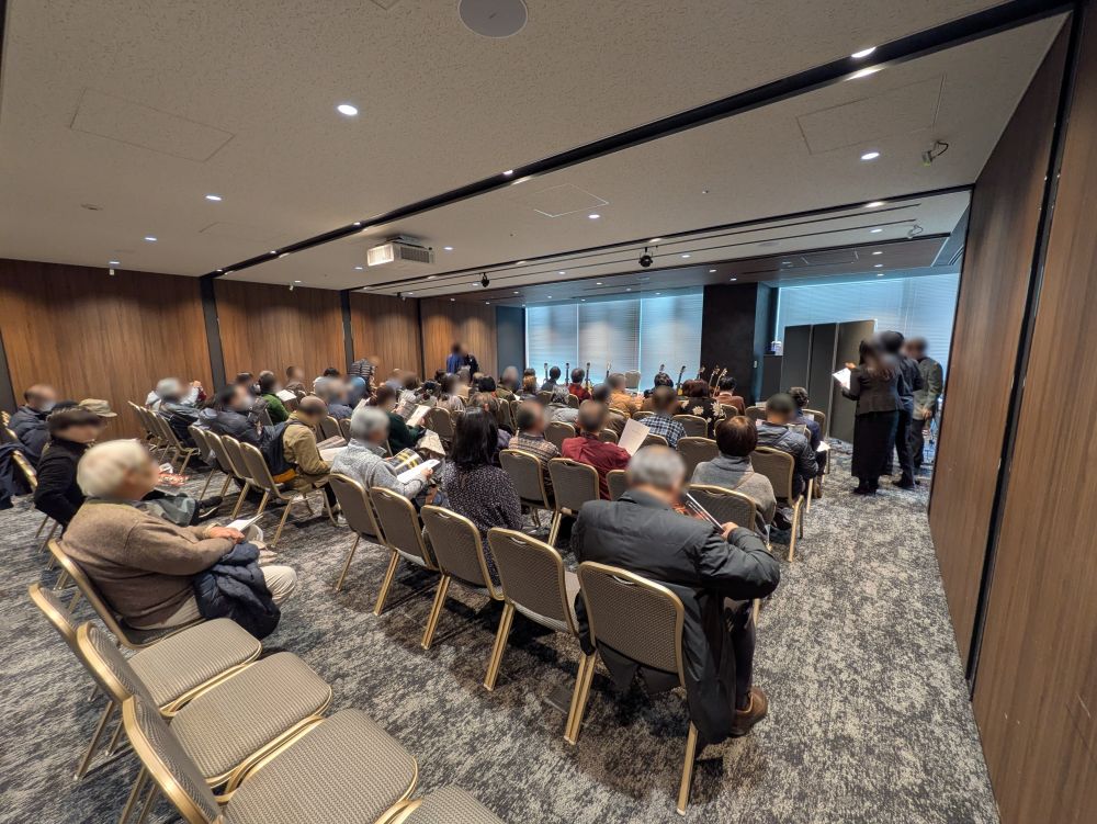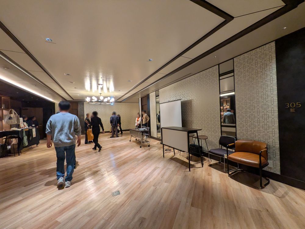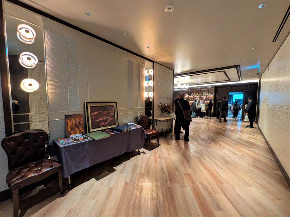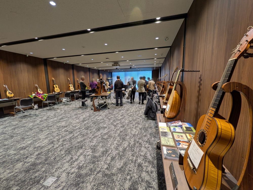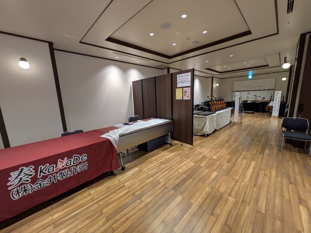 「第64回 2025弦楽器フェア」をご開催いただき、全国各地の製作者のヴァイオリンやギターなどの弦楽器楽器を展示されました。「バンケットホール真珠」をヴァイオリン系展示会会場、「301-杏」をギター系展示会会場、「302-茜」をイベント会場、「303-橙」「304-菫」「305-藍」を控室としてご利用いただきました。「301-杏」~「305-藍」をご利用のため、共有ラウンジ部分も専有部分としてご案内いたしました。歴史と新しさが調和する会場の雰囲気とも相性が良く、心を込めて製作された弦楽器をより引き立てる空間としてご活用いただけました。