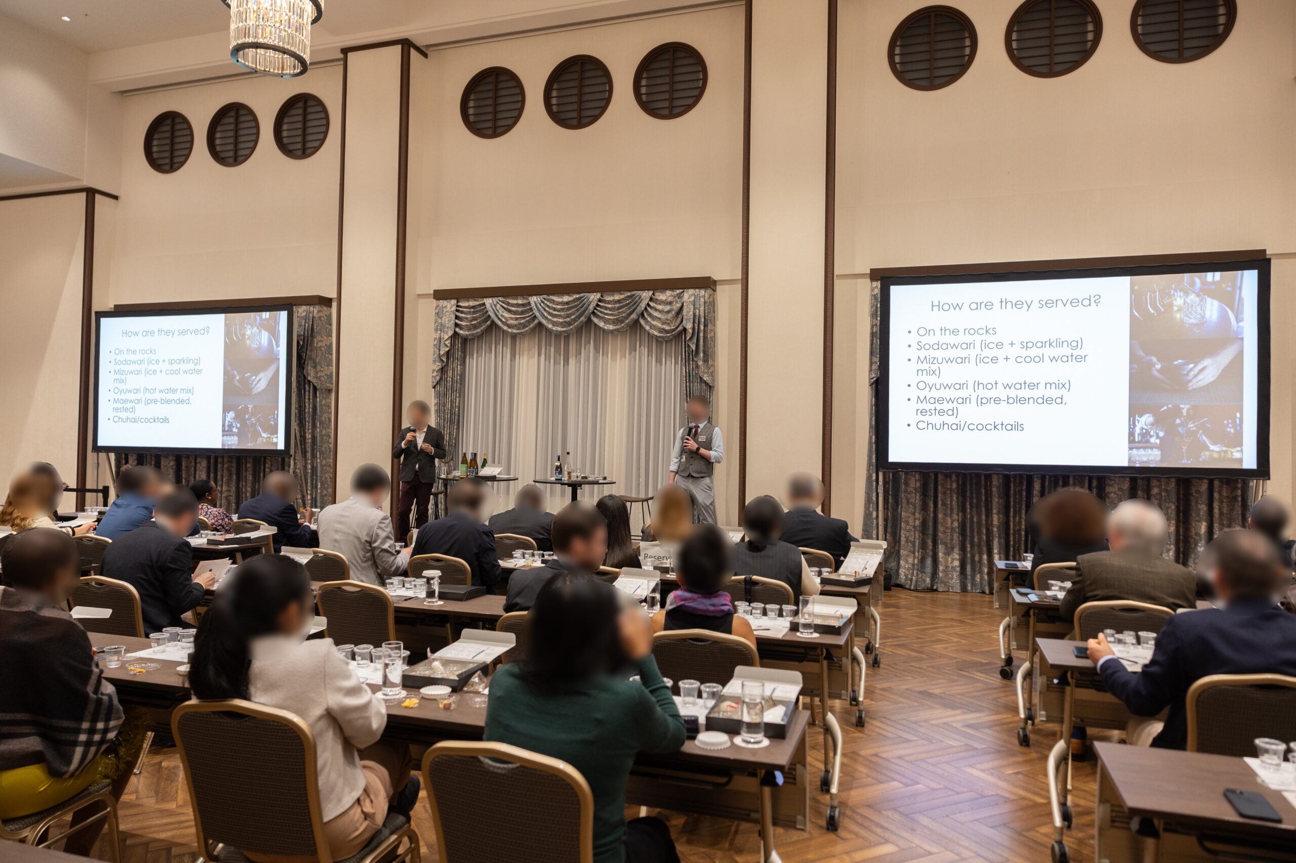 日本酒造組合中央会様主催で、外交官をはじめとする在日外国人の方を対象に、日本の國酒である本格焼酎・泡盛の魅力と文化を体験できるセミナーと試飲会をご開催いただきました。70名を超えるご参加者様にご来場いただき、セミナーを3Fバンケットホール真珠で行い、その後 2Fバンケットホール鳳凰へ移動して焼酎・泡盛の試飲会を行いました。試飲会では、実際にご提供するお酒に合うお料理メニューにアレンジし、焼酎・泡盛をより楽しんでいただくことができました。